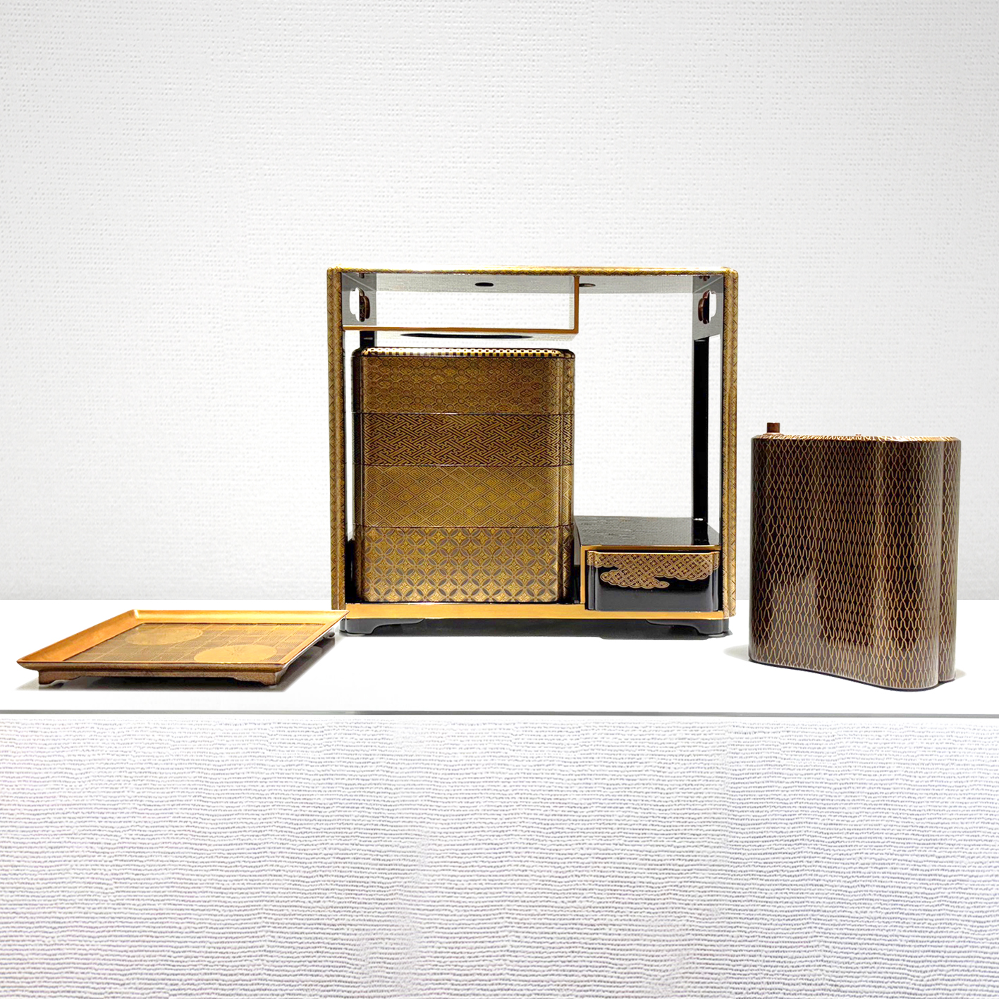 黒漆幾何文様加賀蒔絵提重