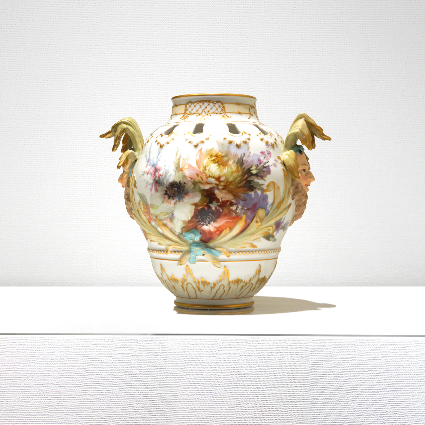 KPM 酒神の顔付き透かし彫り飾壺