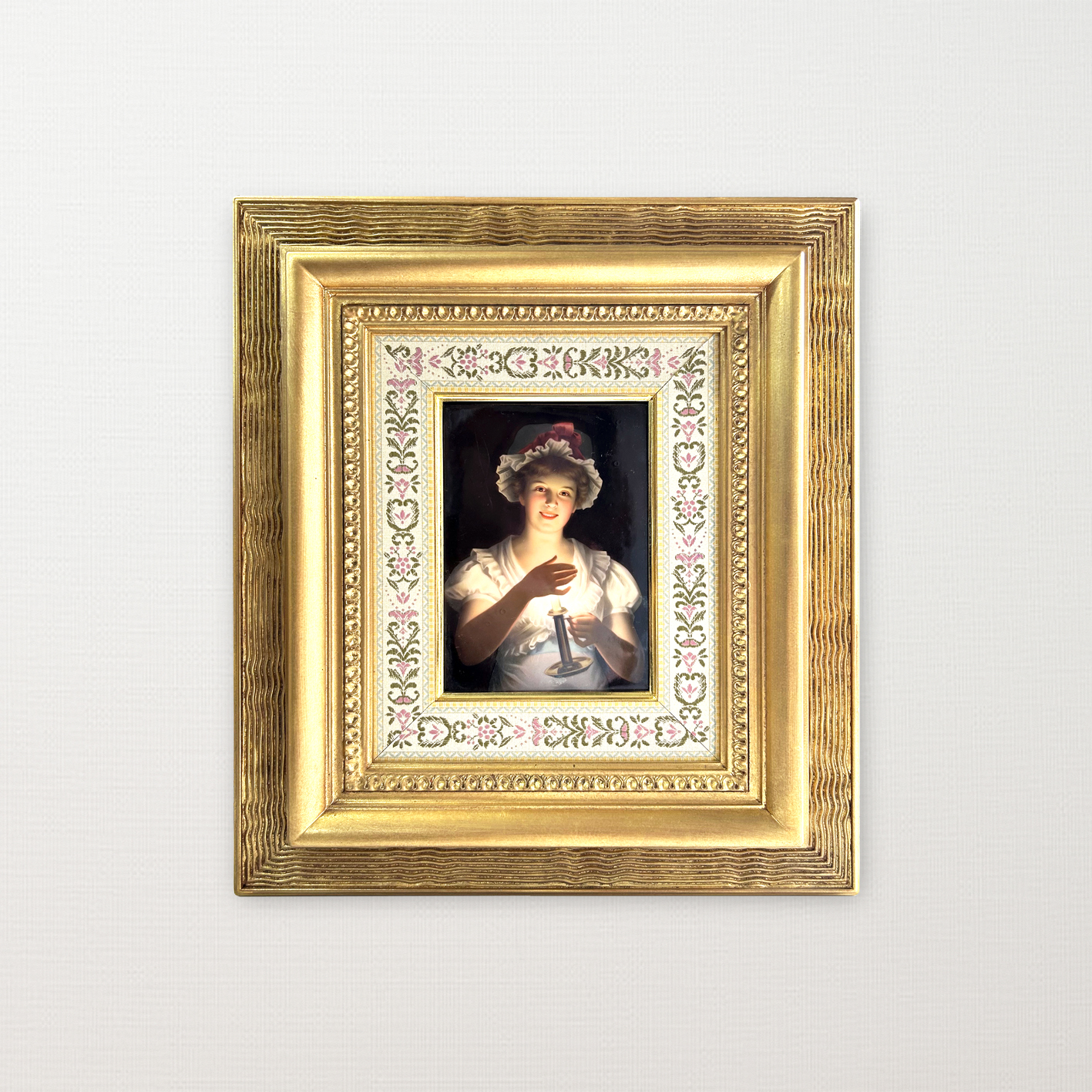 KPMの陶磁器 陶板画「 ろうそくを持つ少女 」