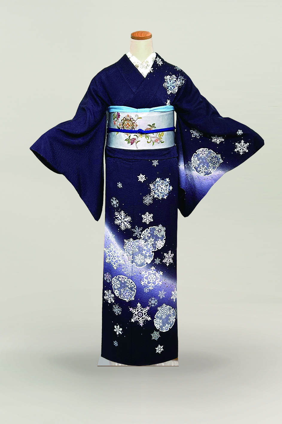 田川啓二がデザインした雪の結晶柄を配した振袖と、宝相華を配した柄のオートクチュールビーズ刺繍が施された帯。 ビーズ、スパンコールなどで刺繍を施し、静かに舞い落ちる雪を表現しています。 作品詳細 製作年 2007年 素材 絹( 着物 ) 刺繍材料 クリスタル、ビーズ、スパンコール、糸 SHARE