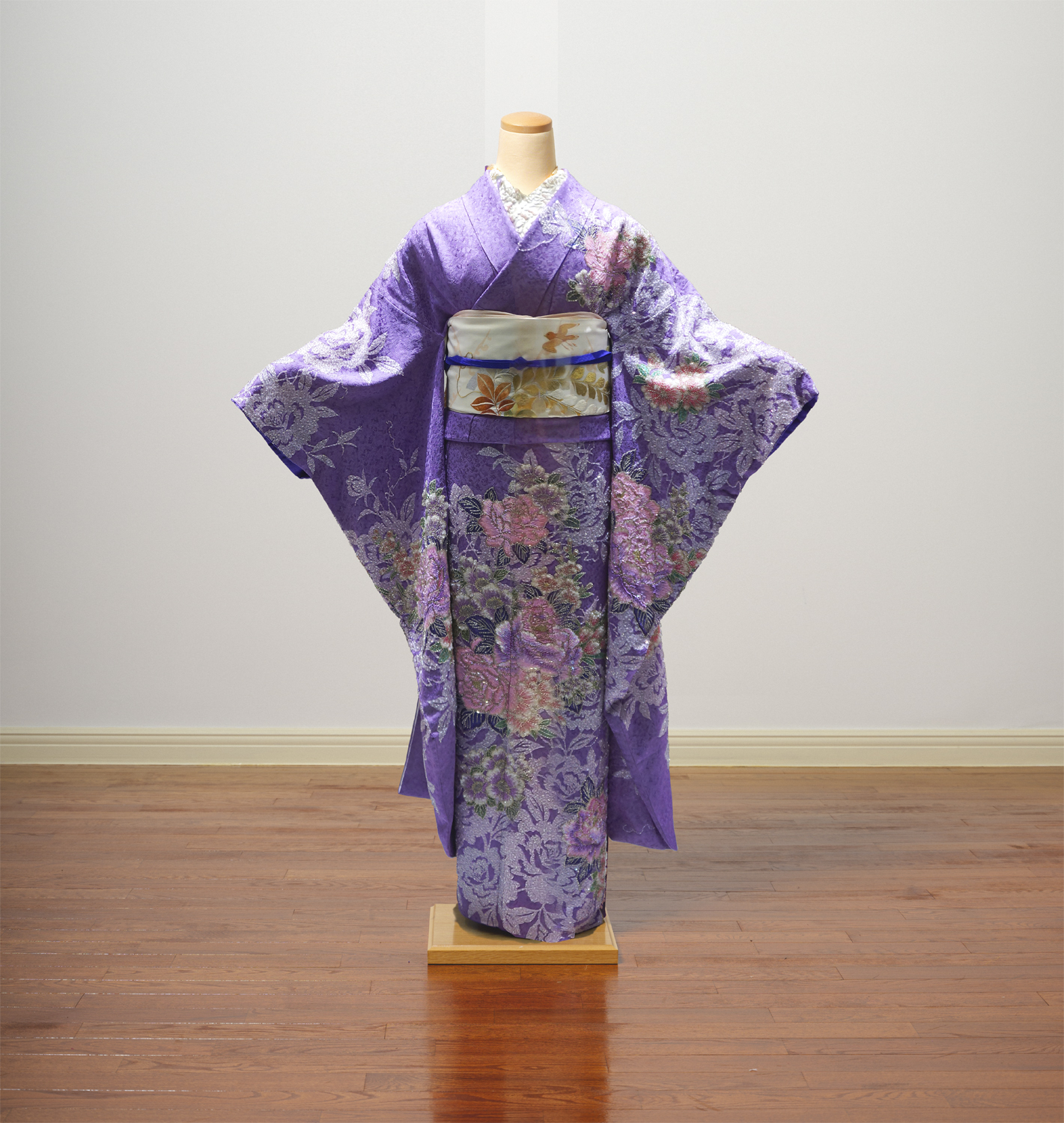 オートクチュールビーズ刺繍の着物 牡丹の花と花の影を、丸小ビーズ、竹ビーズ、スパンコールを組み合わせて刺繍した振袖。 帯:白地に破れ引網 丸帯。 DR404 制作情報 制作年 2010年 素材 絹 ( 着物 ) 刺繍材料 ビーズ、スパンコール SHARE