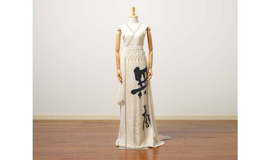 アンティークファブリックのビスチェとサテンスカートのセットアップ