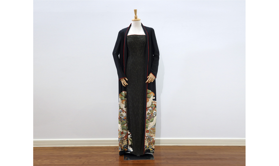 留袖イヴニングドレス(花庭に舞い飛ぶ鳥)