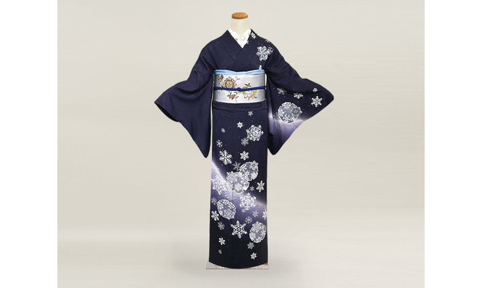 濃紺地雪の結晶文様