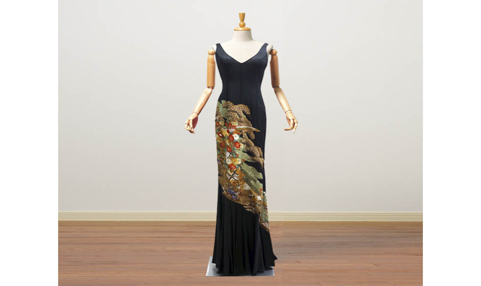 着物イヴニングガウンとゴールドメタリックドレス