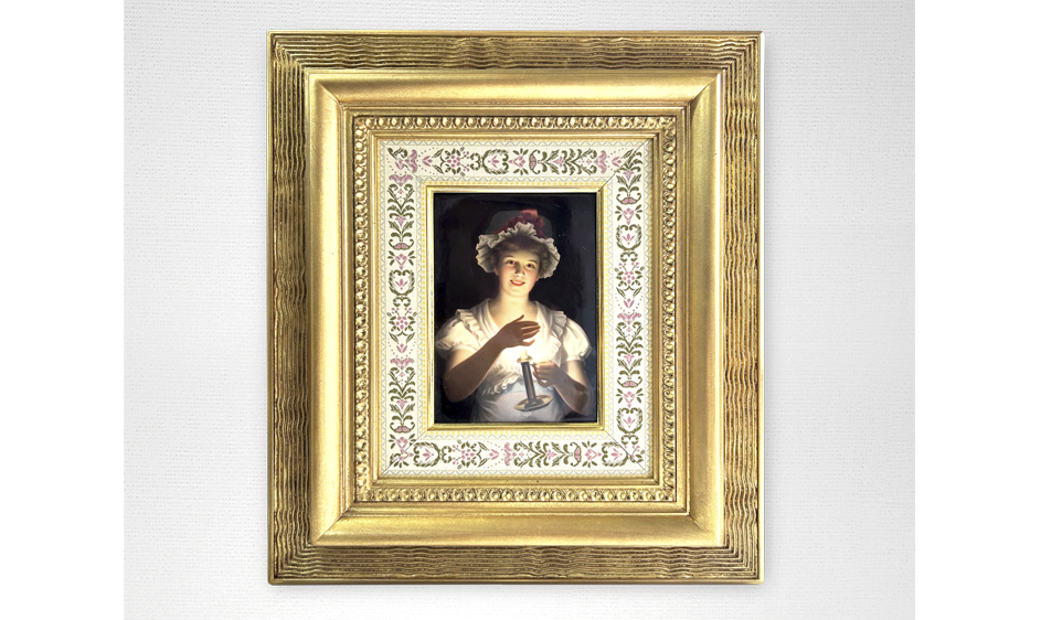 KPMの陶磁器 陶板画「 ろうそくを持つ少女 」